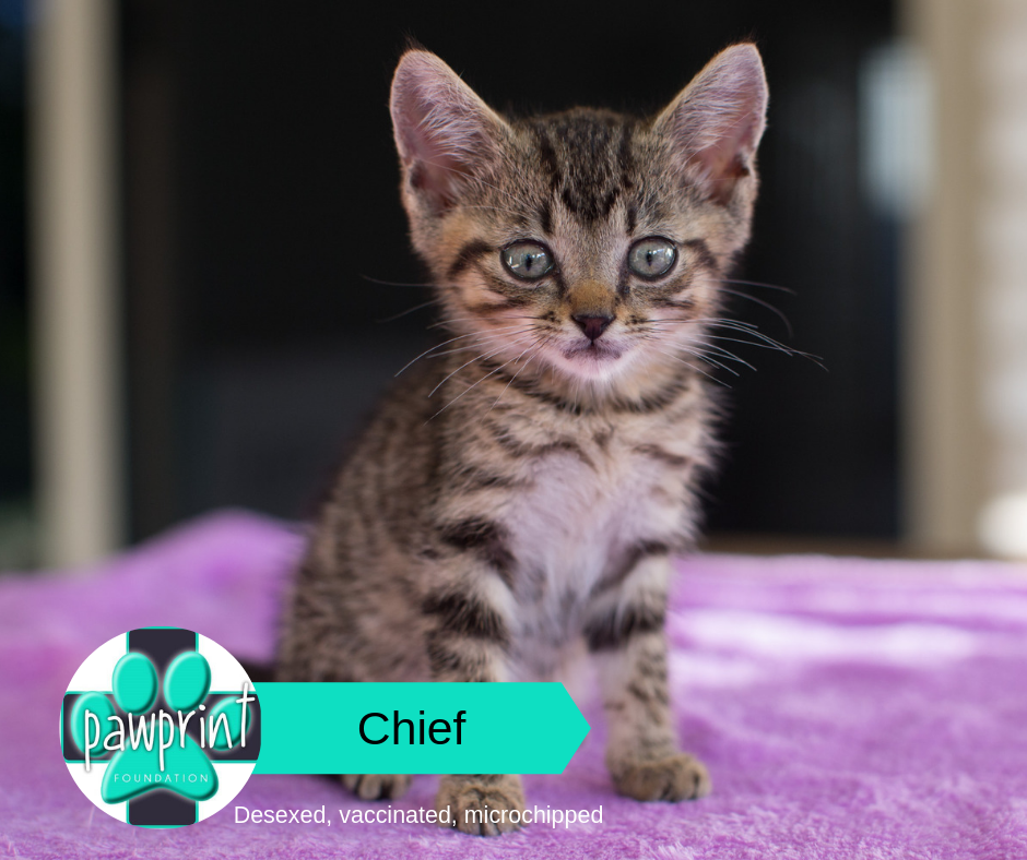 I'm a very friendly happy kitten who loves to be in your company. I'm the 'runt' of the litter and although I'm tiny, I'm eating and drinking well and am completely litter trained. I love snuggling up for cuddles and currently sleep for hours at a time. I love hanging out with my brothers and sisters but am a little cautious of other animals at the moment (my foster mum says it's because I'm so little compared to the rest of the world). I love cuddles and pats and purr alot when you hold me. I love kids and adults alike and am looking for a special forever home. My coat is short haired and I keep myself clean and shiny. Come and meet me so you can see how special I am.