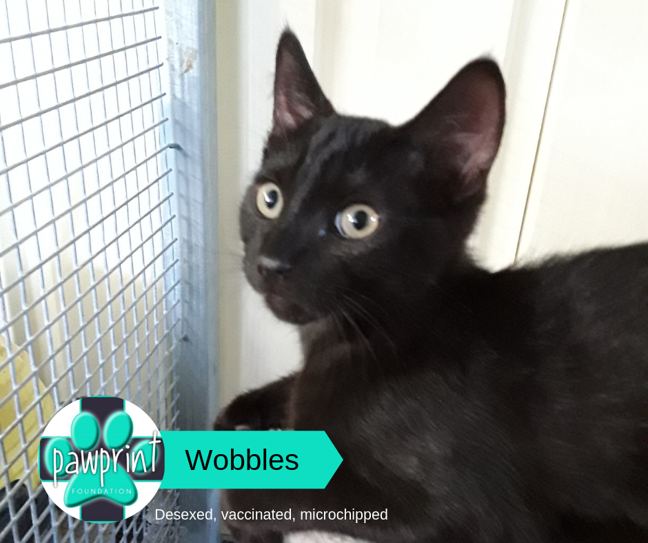 Wobbles was surrendered to us with his brother, Flash, from a loving family in Gympie. The family just adored these kittens and the little girl was so upset to see them go, but unfortunately they could not stay. He's great with kids, very playful and energetic, with a cheeky side and just loves to be around his brother. Wobbles and Flash are a bonded pair and must be adopted together or their hearts will just break :(