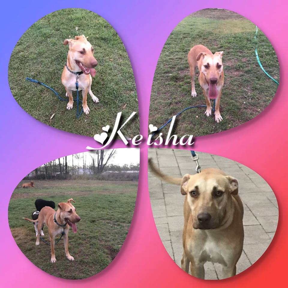 Keisha is very friendly and easy going dog too. Shows no aggression towards other dogs. As she is currently living with male and female dogs. Also just walks past the cat so definitely has been brought up with Cats. She has no interest in him.
