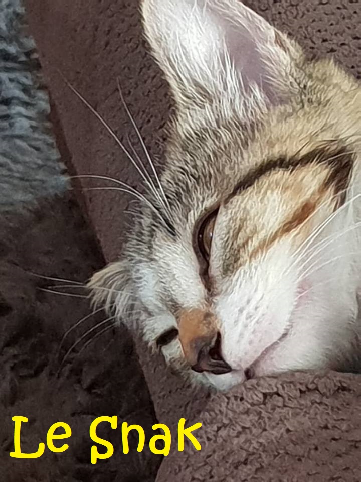 Le Snak was found living under a school demountable with his two siblings Poppa & Milo. They had been stealing kids lunches to survive. After spending a few weeks in foster care they thrived into beautiful kittens enjoying play and exploring.