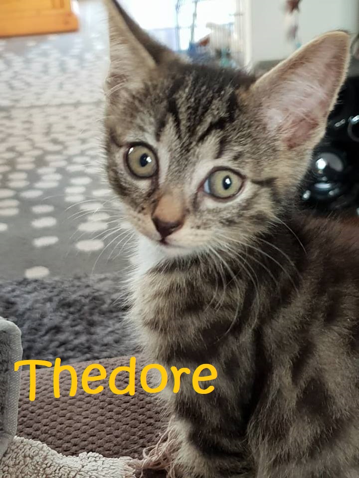 Theodore was found living near a preschool with his two siblings Simone & Alvin. They were timid and scared when they arrived, but after spending a few weeks in foster care they thrived into beautiful kittens enjoying play and exploring.