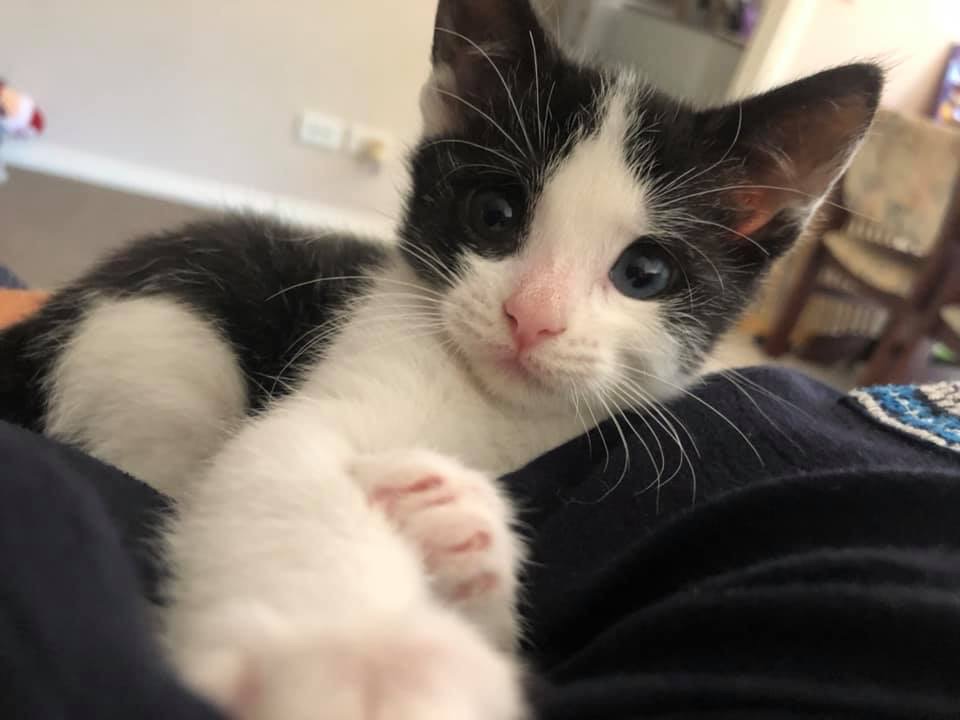 Little Mary is just too cute for words! She’s snuggly, playful, smoochy all round into one little beautiful kitten. With one blue eye and one brown eye she has the most beautiful little face and she just a little tail but that doesn’t stop her from showing her excitement and love. She gets on with dogs, her brother who is also available (terry) and people. She will be an awesome cat!!!
