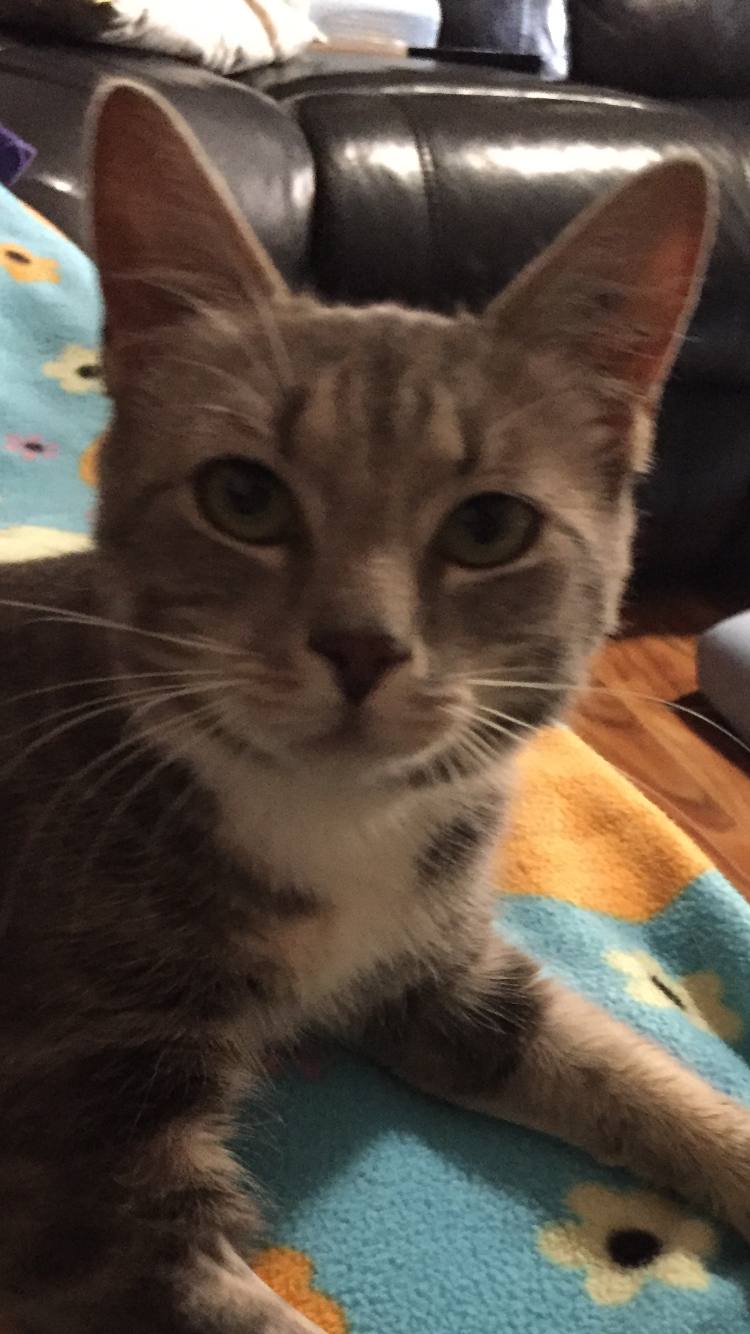 Tara is an affectionate girl only new into care and already loving being around people she likes to be with you sit on your lap or beside you on the lounge she also enjoys a play in the cat tunnel or with a feather on a string Tara is an easy going girl not startled easily