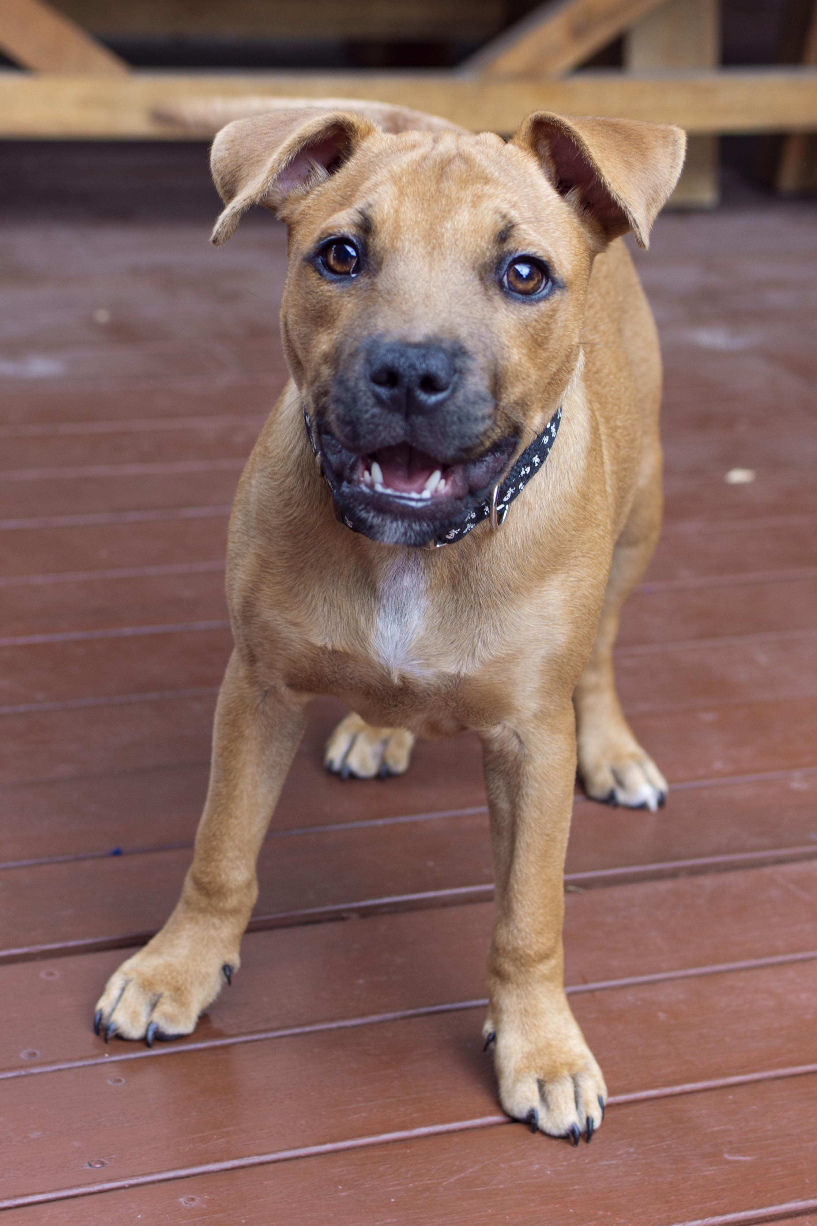 Stanlee will grow to be about english staffy in size, he wont grow huge, he is a bit on the small side, but what he lacks in size he makes up for in personality!! This little firecracker is so much fun to play with! He will play chasey, where you chase him around the house and yard :P