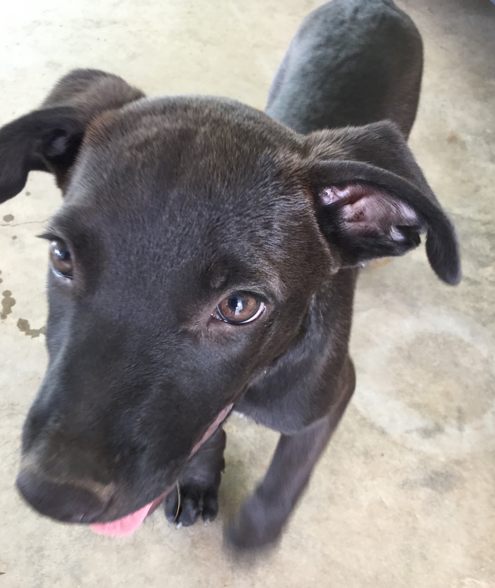 Clyde has a lovely short coat, so there won’t be too much shedding, it’s a gorgeous black/chocolatey colour.