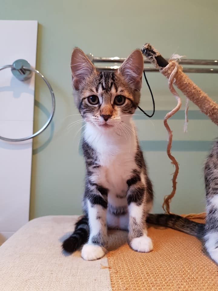 Pudding is one of our Christmas rescues who came into care with 4 siblings. Pudding has had a decent amount of contact with humans from birth so she is very friendly and loves being cuddled, often seeking out a lap to sit on. She is a gentle and inquisitive kitten and would suit a home where she will have someone to cuddle and play with regularly. Alternatively, she may be well suited as a companion to another friendly cat. If you are interested in adopting Pudding or any of her siblings, please fill out our application form. (link can be found further down the page.) We look forward to hearing from you.