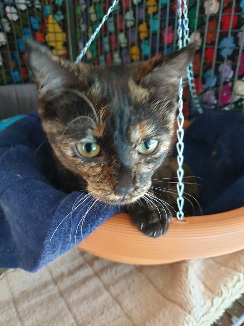 Cher is a pretty little Torti, full of fun and affection. Loves to play with her siblings and cuddle up to her human when its rest time.