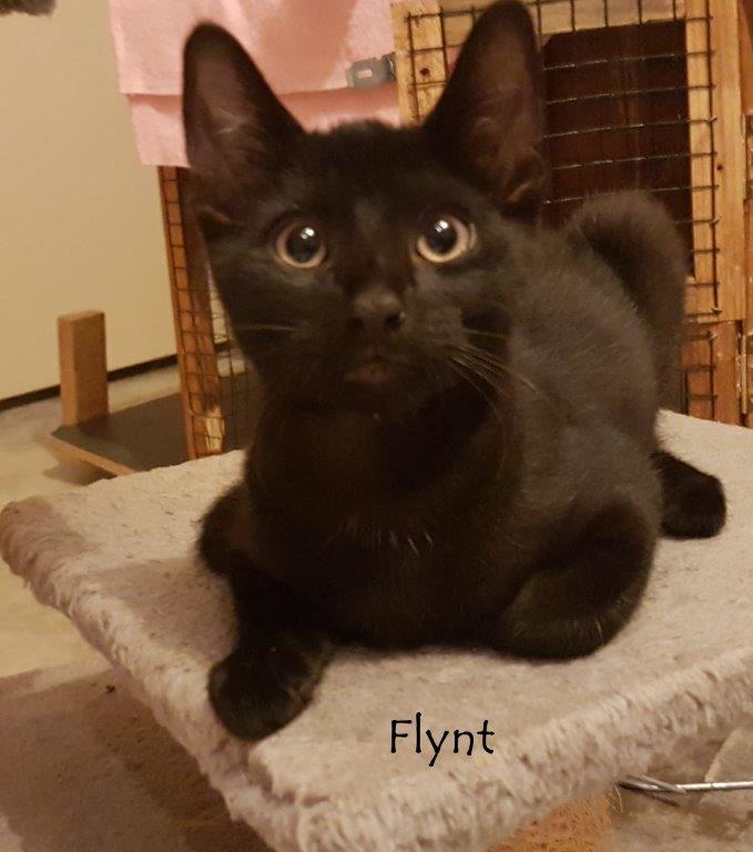 Flynt is a softie. He is a very gentle and laid back little guy, happy to sit back and watch the world go by. He is a purr machine, loves to play, is fascinated by running water, and loves company. He is not at all demanding, but loves to know where everyone is. He has a really dark, glossy, soft short coat, and somewhat resembles an oriental breed with his handsomely triangular face and ears. He is lean, sleek, gracefully acrobatic and has a certain serenity about him .