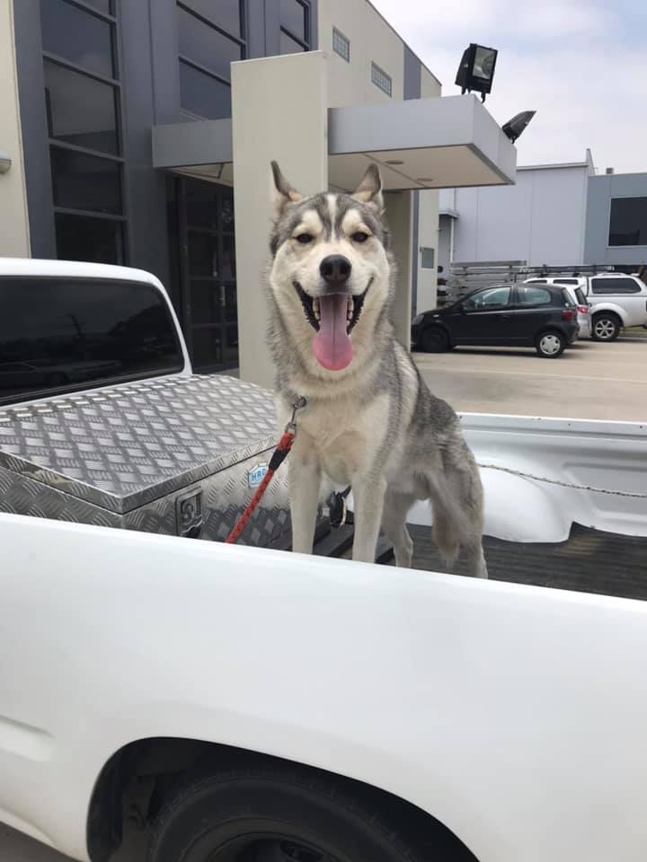 He is social with other dogs, but like any good Husky is a bit full on, so any brother or sister doggo would need to be up for the rough and tumble.