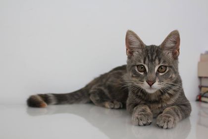 Cleo is ready to find a home to call her own! Cleo is an extremely confident, playful and affectionate kitten. Everyone who meets her instantly falls in love with her sweet nature! Each morning she greets you with lots of purrs, chirpy meows and cuddles. After playing with her toys and tiring herself out, Cleo loves to have a nap on your chest or shoulders but is also happy to laze about on the cat tree or bed by herself. Cleo is a pleasure to have around as she always manages to put a smile on your face with her mischievous antics. Cleo has a stunning grey coat with hints of cream and ginger and a fluffy little tail, so she may grow to have a medium length coat. She also gets along well with other cats, however would suit a home with a cat that is tolerant and easy-going. Cleo is very adaptive and settles into new environments quickly. She never fails to impress everyone with her fearless and inquisitive nature. So, if you are looking for a cat to bring some life into your home, Cleo is definitely your girl!