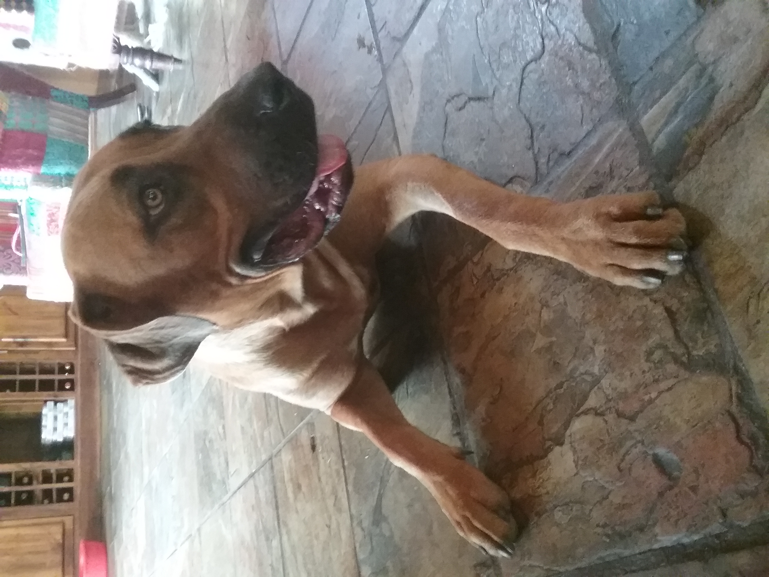 This beautiful big girl came to us from Nambucca Pound she has fitted in with us along with 13 other dogs from 2kg to 50kg in our home.