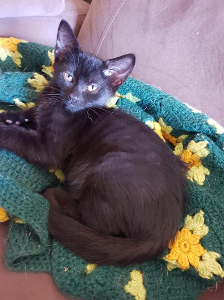 Raven- this gorgeous black boy has beautiful yellow eyes that stand out. He loves to play with any thing fluff, fur or a fly. He loves to curl up and fall asleep on your lap while getting cuddles.