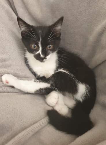 Hi! My name is Oreo – I am a seriously cheeky, independent, loving girl. I really like to the toy goldfish my foster humans have, it keeps me entertained for hours! During the day, if I am not playing, I’ll have a cat nap next to the humans on the couch. My favourite things to do are play with my foster brother Taako and at night, I like to sleep next to my foster humans. Did I mention that I am a purr machine!? I am currently living in foster and would suit a home with other fur friends, I even don’t mind dogs! I am microchipped, vaccinated, flea and worm treated. I will be desexed when I am 2.2kg. If you’d like to meet me then please send us a message.