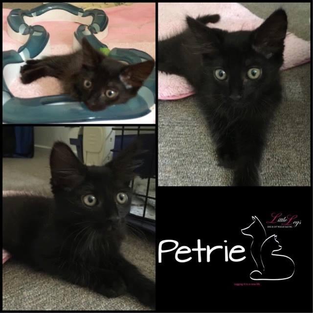 Petrie is more shy and would probably take a bit of time to warm up to new people. He really loves his pats, under the chin especially and he just melts. Petrie and his brother love to play together.