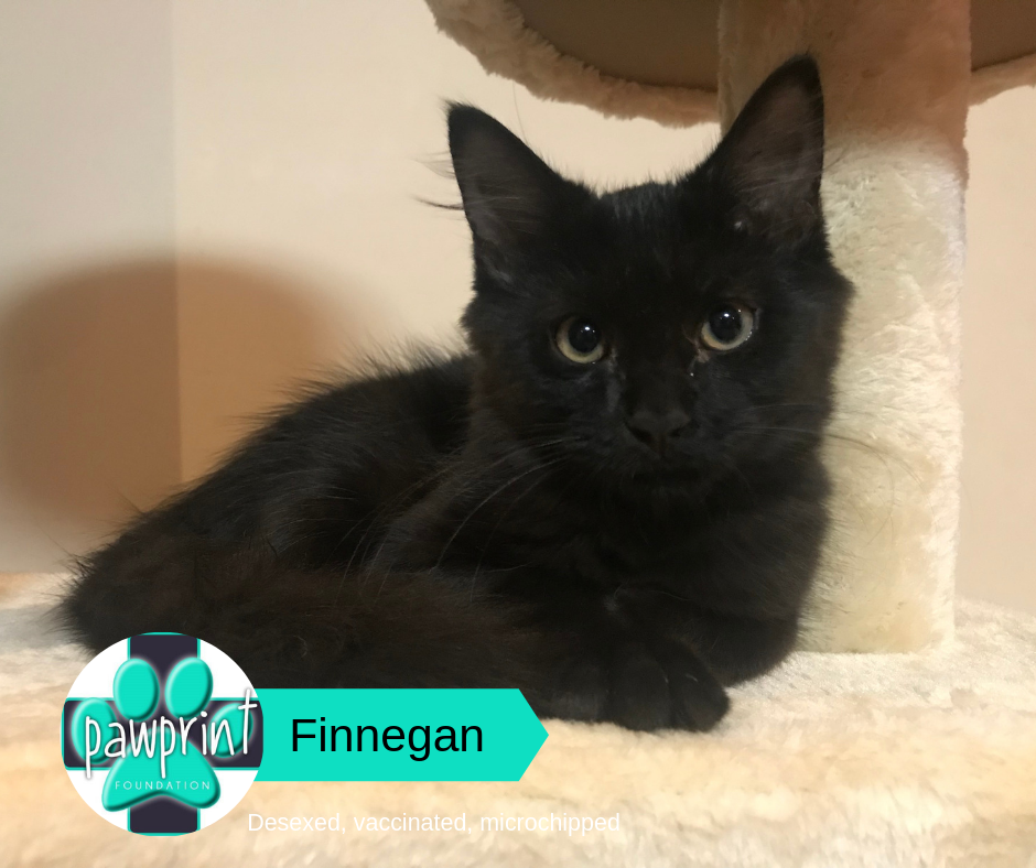 Finnegan loves to play and get into mischief. He can be quite shy at first but is now happy following us around the house having a chat or playing ‘fishing’ with our 3-year-old. As much as he loves being part of the family he is also an independent boy, who loves sitting up high in his cat tower castle and is happy to entertain himself with his scratching poles and toys.