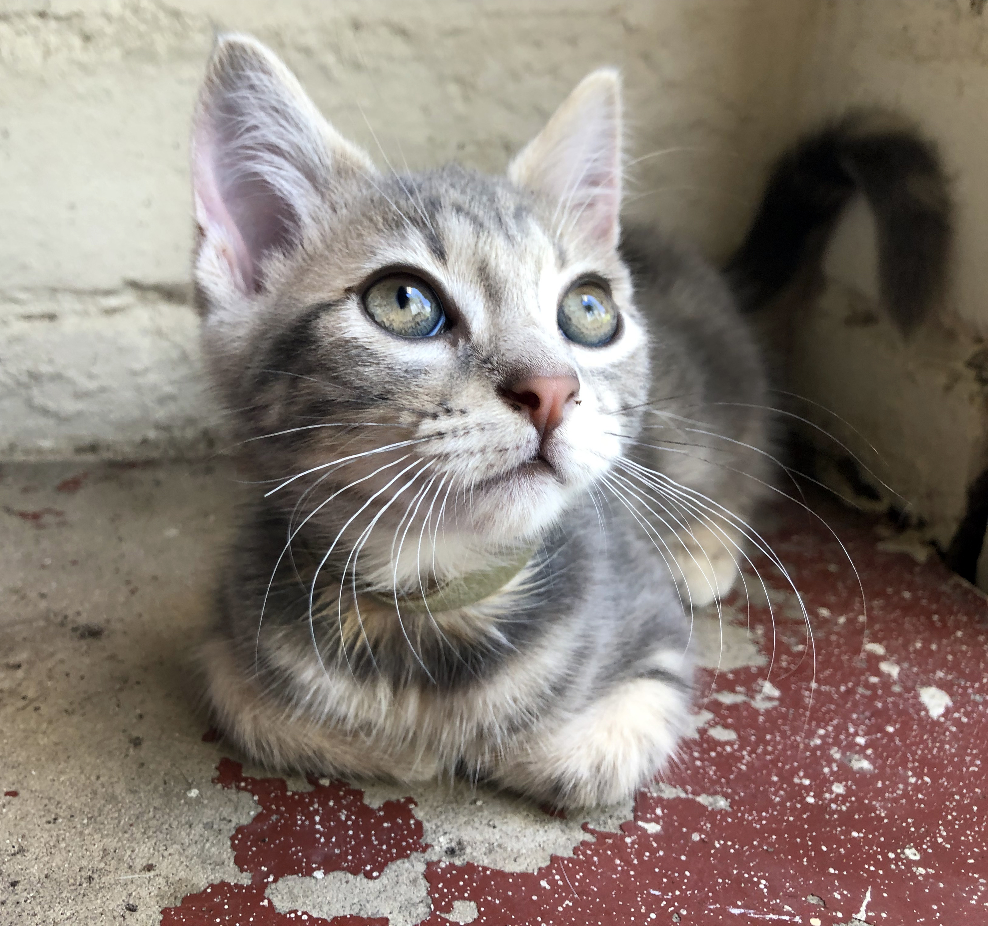 Sprinkles is a great little 8 week-old tabby girl. She and her brother and sister were rescued by the fire department after they became trapped under a water tank during the last big rain. Sprinkles is confident and also very friendly and cuddly AND she's been raised along with dogs in the house, so she's dog-friendly too. Why not consider adopting her along with her brother, Tenzing. He's also confident and super cuddly. Adopting two cats is so popular at the moment - the reason being that they keep each other company while you're away from home AND they're twice as much fun when you're home. Our adoption fee is $240 for one kitten and only $280 for two.