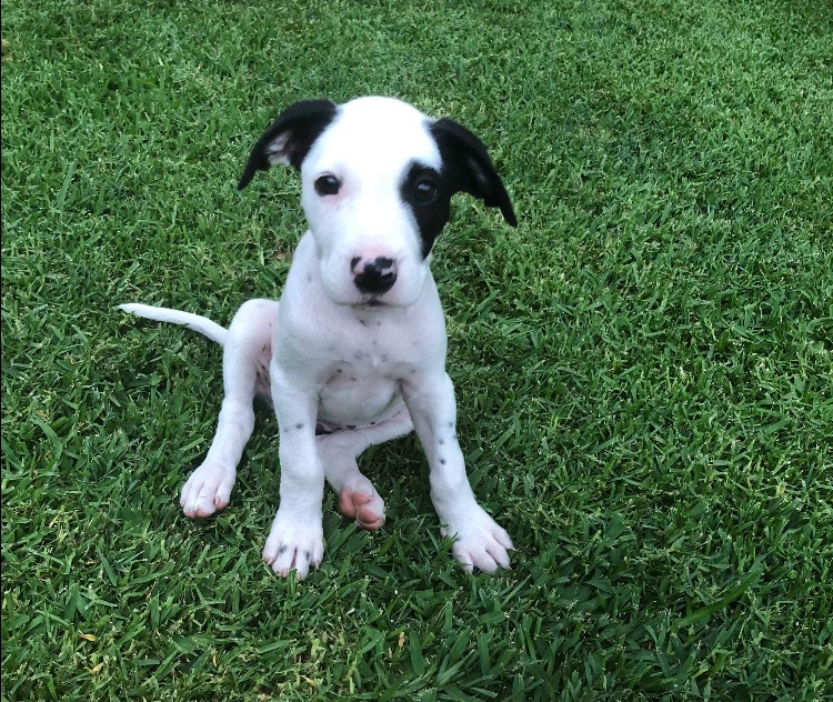 Meet Tess! She is a 16 week old German Shorthaired Pointer x Bull Arab puppy who loves to snuggle close, socialise with her siblings and play outside. Her playful nature and unique eye patch makes her one of a kind.
