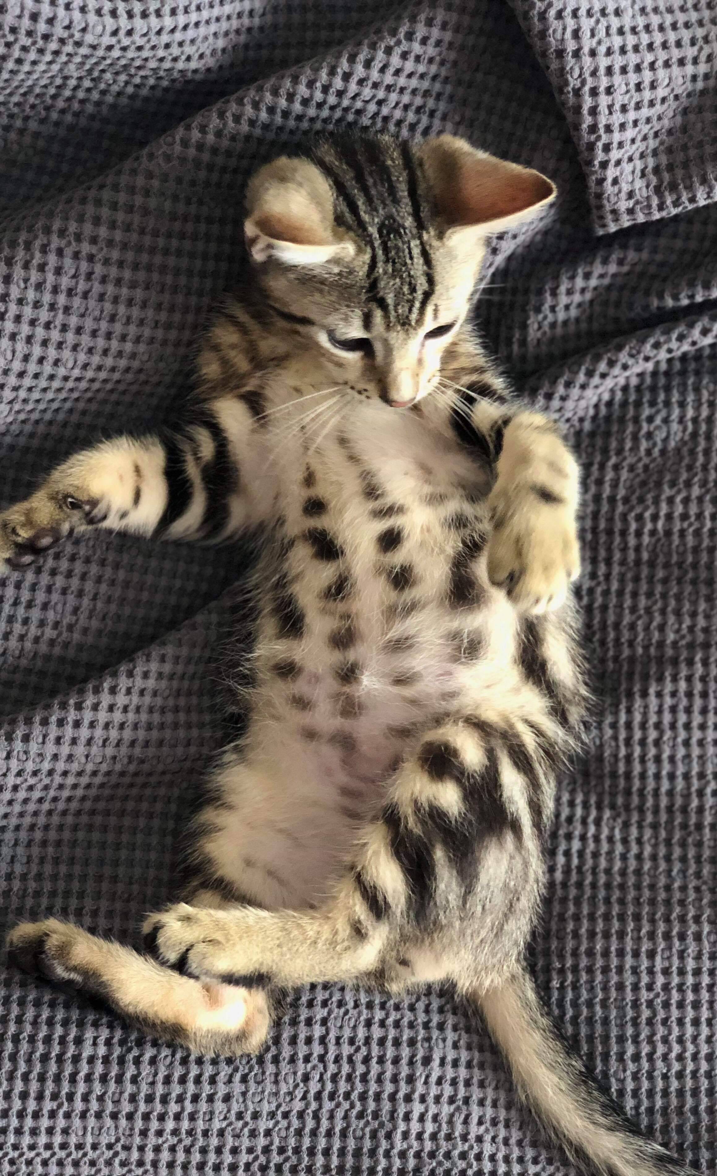 Milo is a sweet, playful and inquisitive kitten. He has lovely green eyes and beautiful coat pattern. He is a Bengal x rescued off the streets.