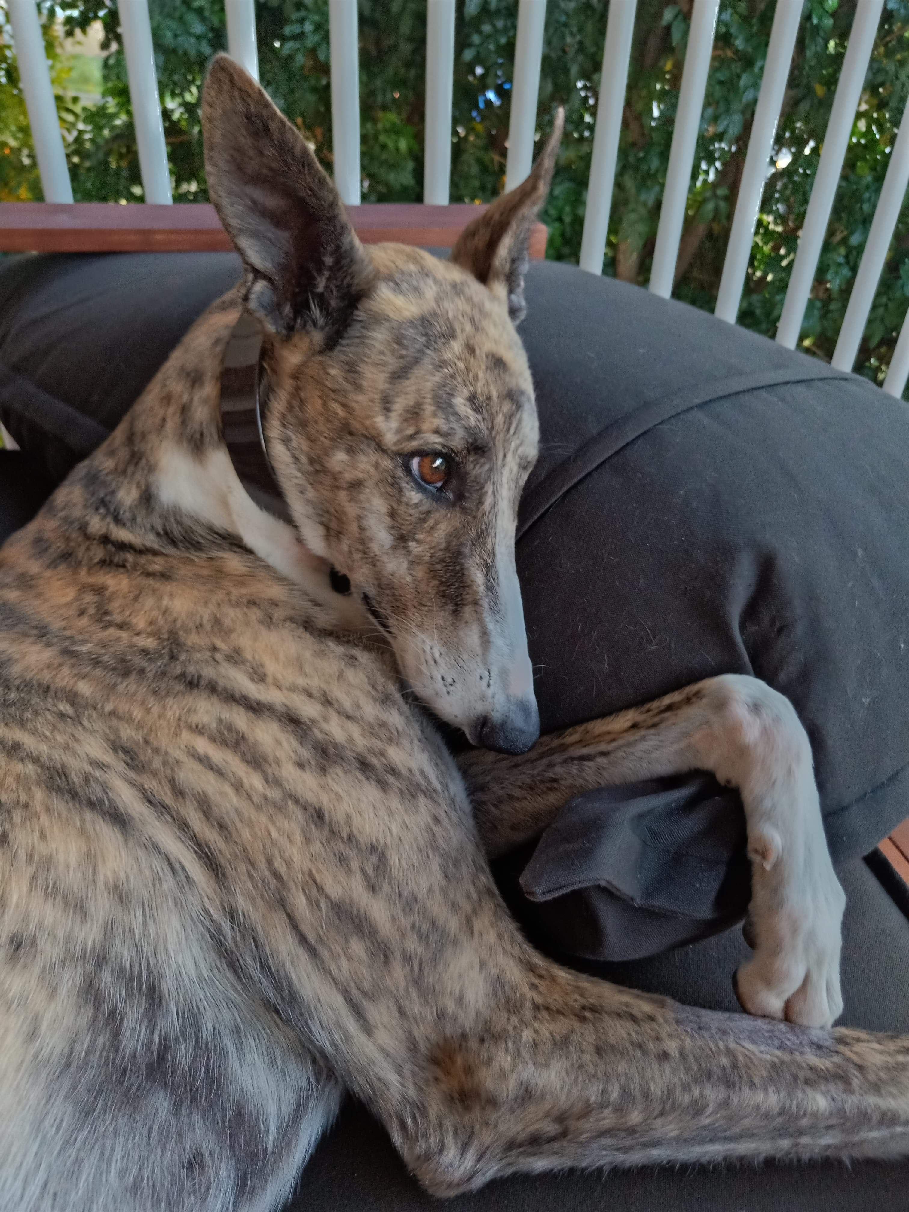 Robyn is a typical gentle sweet greyhound girl who is in foster care with another grey. She settled in quickly and is ready to find her own forever family. She needs a home where she can be part of the family. She would love another gentle dog for company.