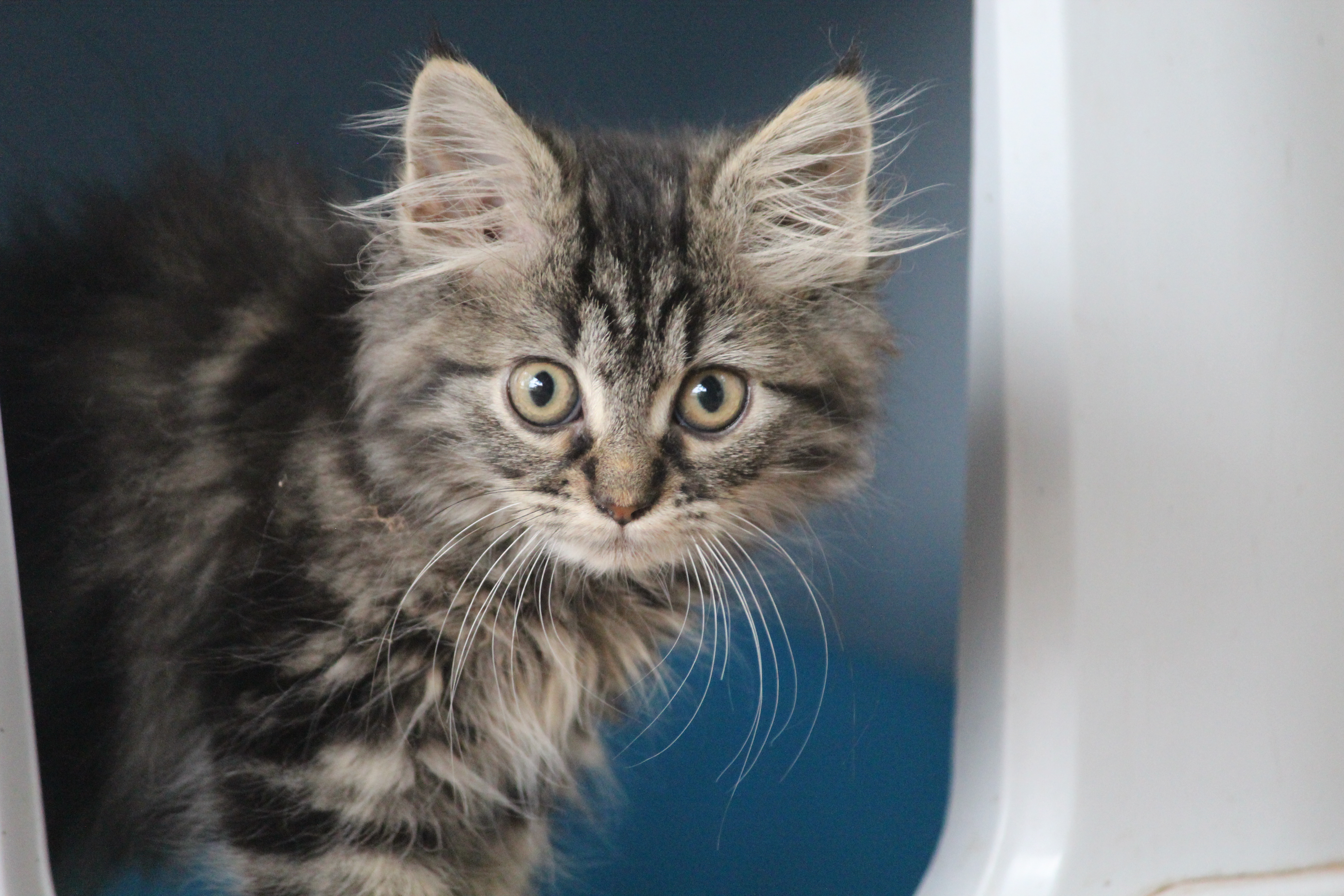 Mink is a beautiful fluffy boy kitten with an adorable face, big eyes. He's also a mama's boy, total sook. Loves attention and meows a lot for it. He'll lay on your lap and purr away but only when he wants. (Classic kitten trait.) he doesn't like to be picked up but will come to you for pats all the time, he'll follow you around demanding you pat him. Mink is toilet trained, eating dry food and loves to play with anything and everything and he will need a lot of grooming due to his long fur mink coat.