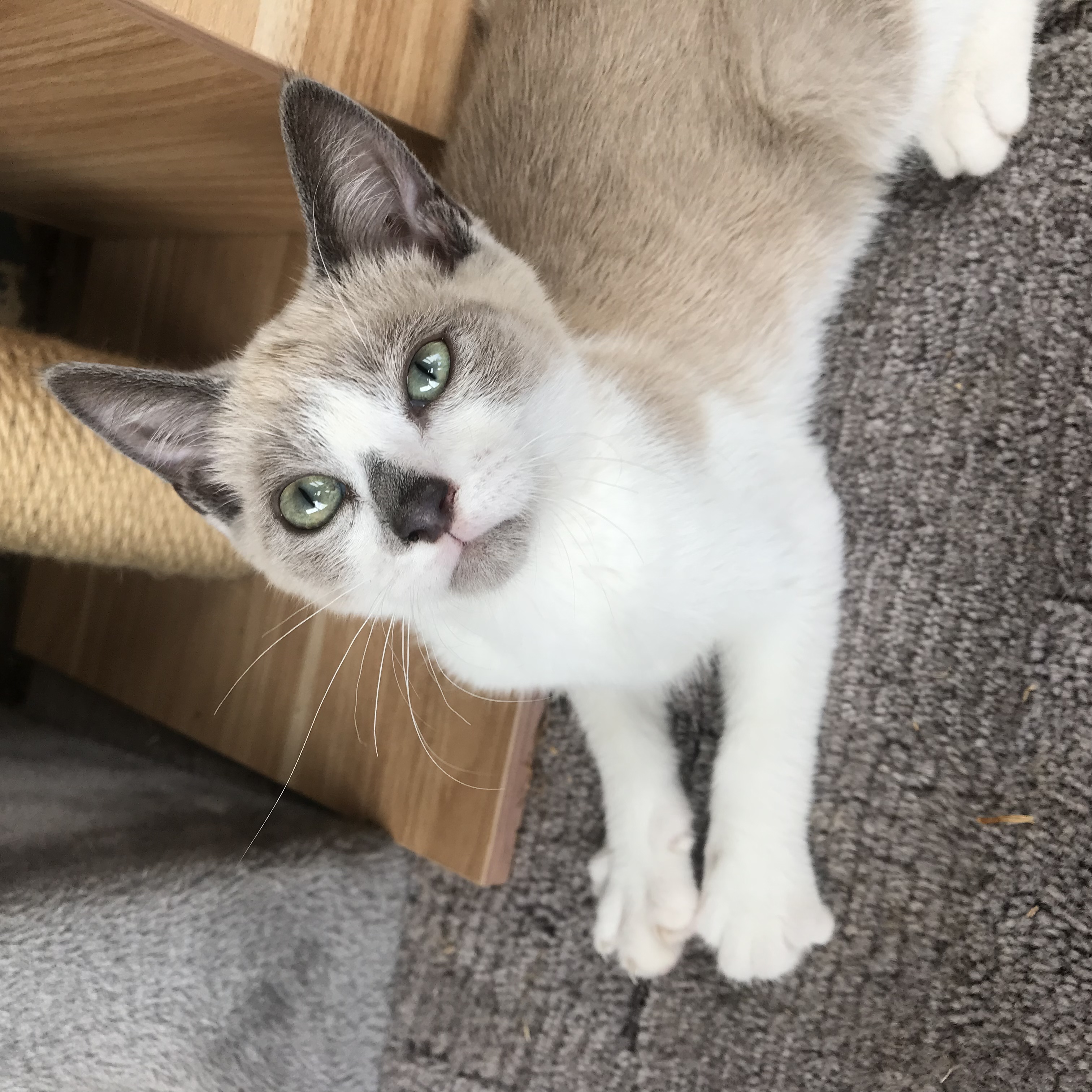 He loves affection and will flop at your feet for pats. Milky is very vocal and loves to have a chat to you. If you like your cats quieter Milky Way is not for you!