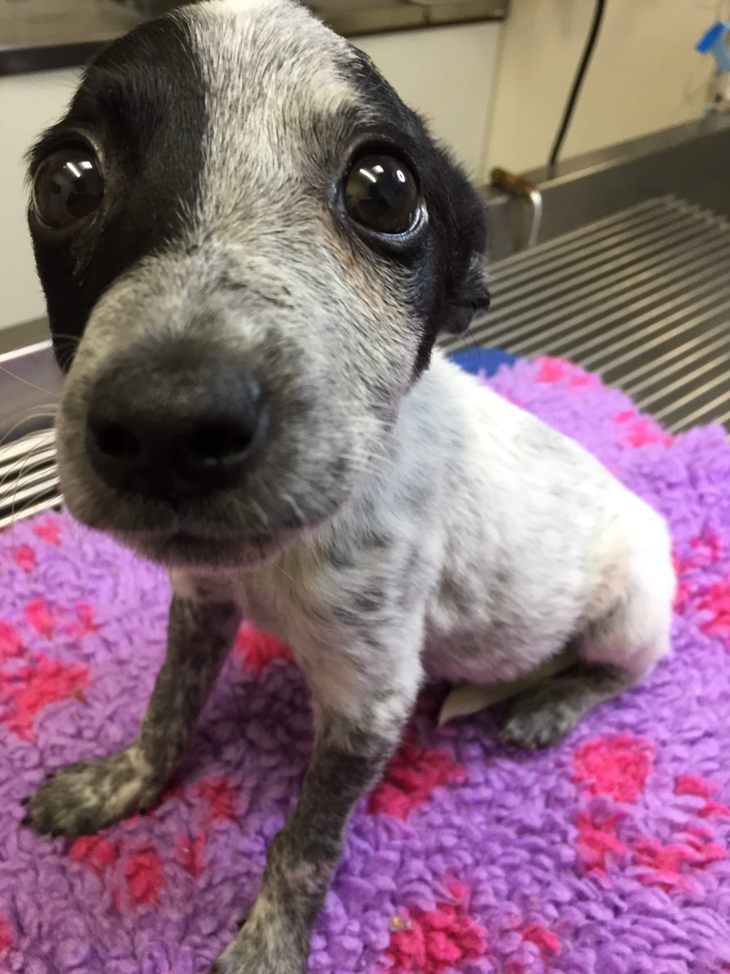 At just 2kg, we are not entirely sure what breed/s make up this gorgeous girl, however we assume she is a form of Terrier/Blue Heeler mix and will grow into a small to medium sized pooch.
