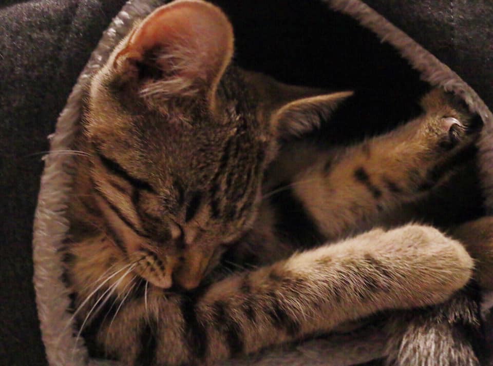 Sarabi is a sweet, and affectionate girl. Like her brother, Fritz and Spencer, Sarabi loves to play especially with her little mice toys she can roll around with. She loves to be around people, and have her head scratched. She can be quite shy around children, but with some coaxing (with play) it doesn’t take her long to warm up to them, as such would be best suited to a home with older children. Sarabi gets on well with cats and dogs, and is often found rubbing up to the resident dogs.