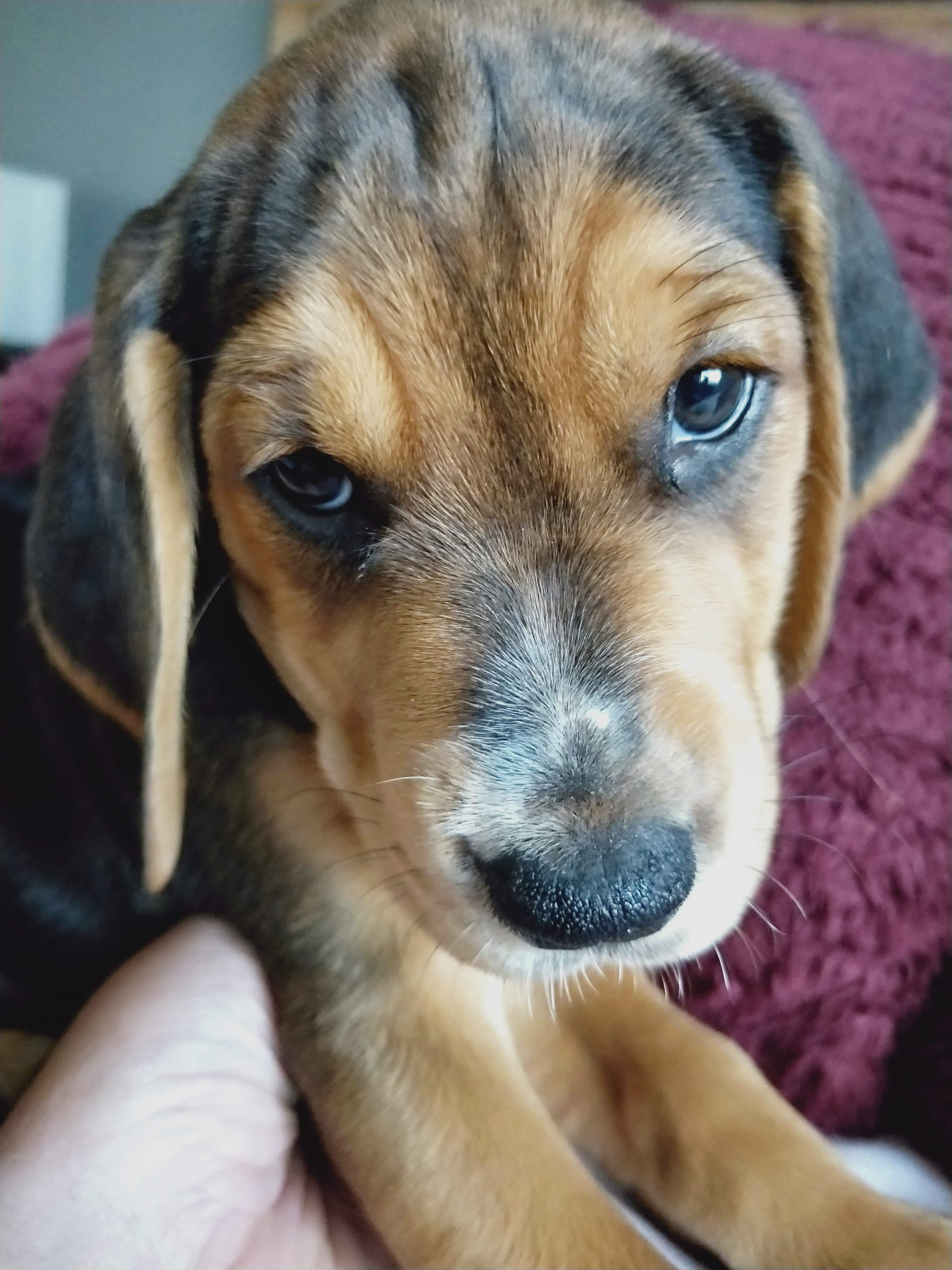 Meet Sabre! A 6 week old Foxhound X puppy. Birds gotta sing, fish gotta swim and Sabre's gotta look adorable with her sooky eyes. She loves kisses and snuggles into a warm neck. She is a soft as silk and loves the attention.