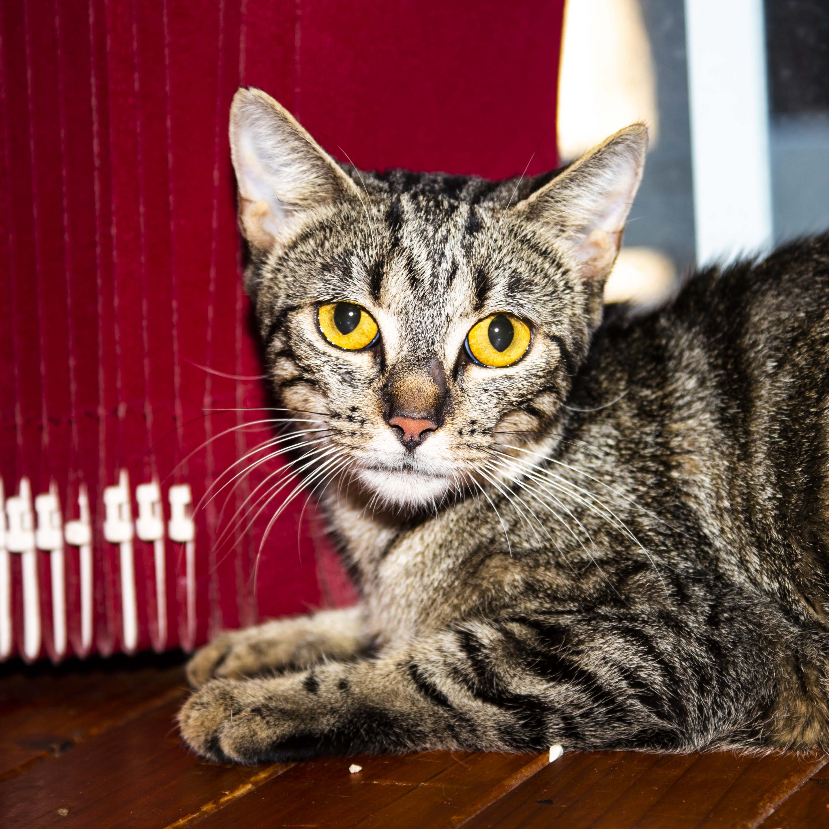 Hi, my name is Mumma Girl and I’m a healthy 18 month old Tabby cat. I didn’t have the greatest start to this world but I’m starting to learn that humans are friends. I do still get a little nervous around people and loud noises (sometimes I think they’re out to get me) but I’m usually coaxed with a soothing voice and some food.