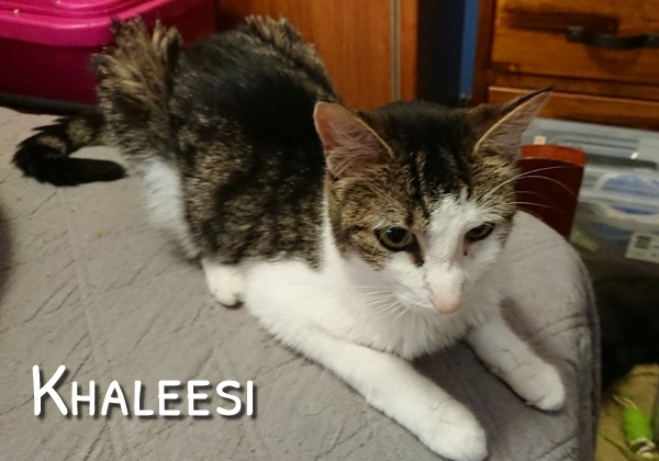 Khaleesi is a very nice girl, with her pretty tabby and white markings and sweet nature please consider this girl if you are looking for a new feline companion.