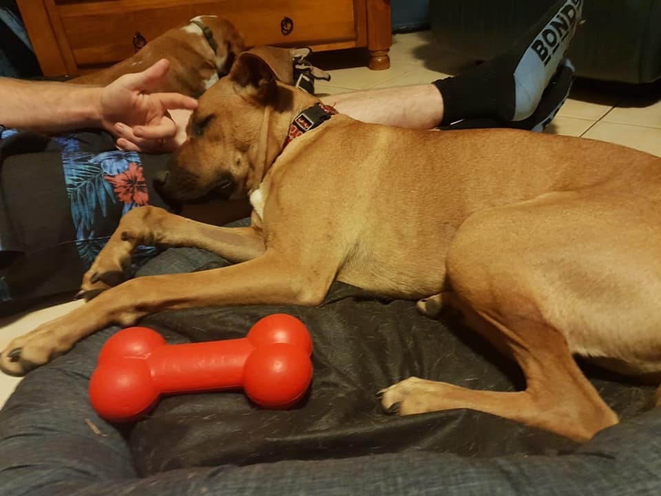 Sheeba has been desexed and is settling in with one of our wonderful foster carers. She is very gentle with children and other dogs but is not 100% cat friendly so please no cats.