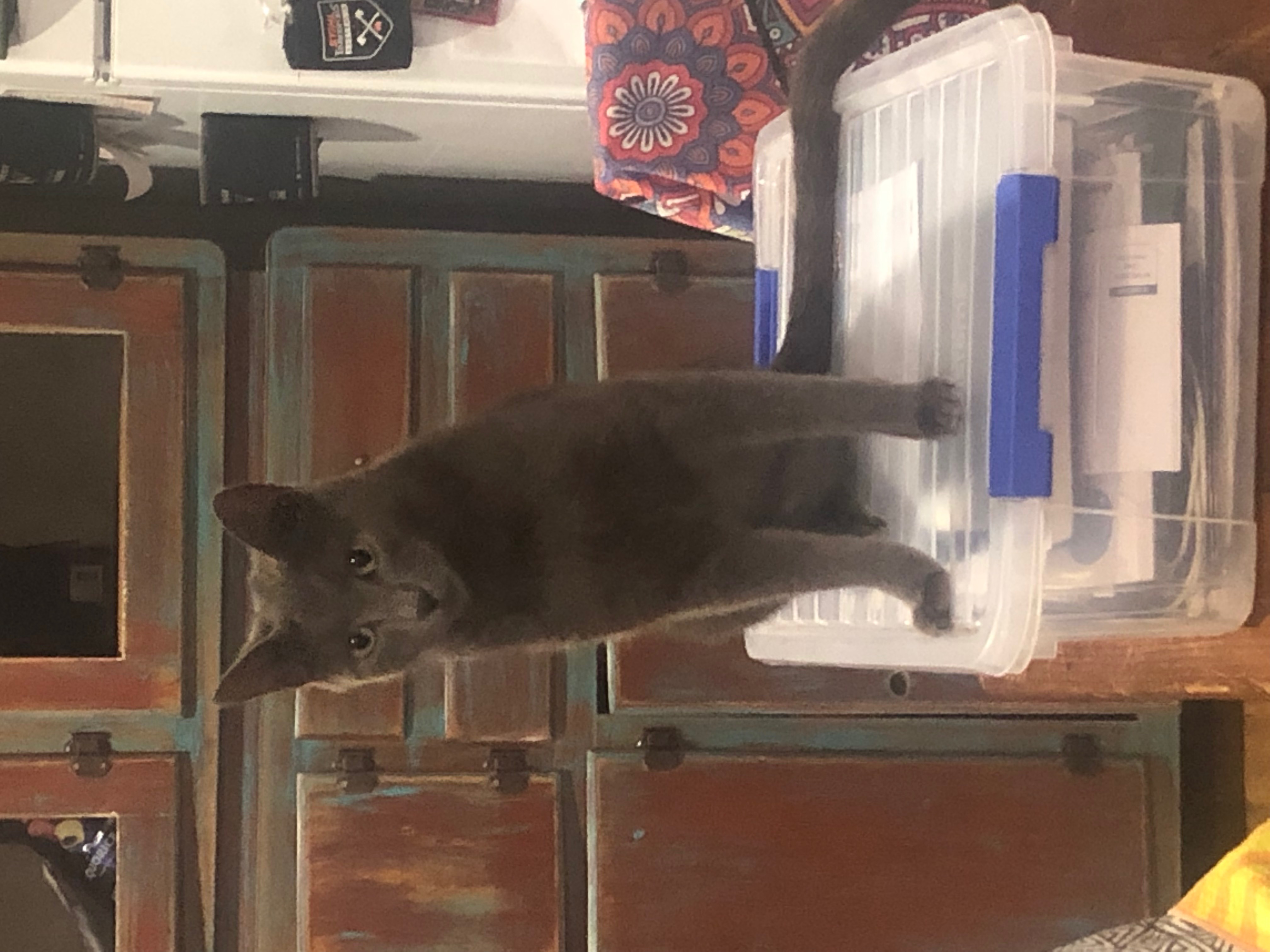 Little Blue really needs a new home and a break from his foster siblings. He has been living at the shelter his whole life, all 4 years! He was found as a kitten with his mum and siblings in a wall cavity, very timid and scared, with damage to his knees and hips. As he grew older, the advice from his vet was to remove one of his rear legs, which was done 2018. His remaining knee is not 100% but with less stress and a quiet loving home, we believe he'd live a longer and happier life. The abundance of his fellow felines in the shelter environment means he feels quite stressed most of the time.