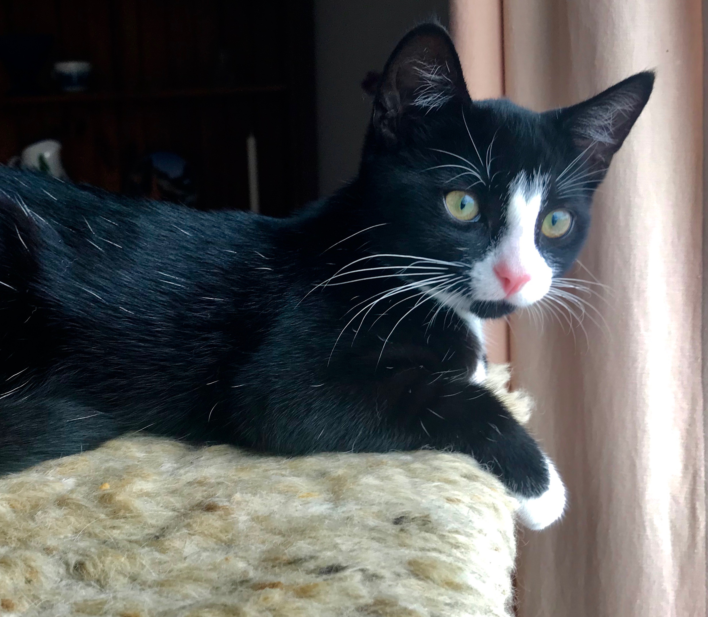 She would make the best kitten for a family with young children. She'd be so busy trying to keep up with everything everyone is doing, she'd be pooped by the end of the day! And if you've got another cat or friendly dog to play with, that would be even better!! She's very social.