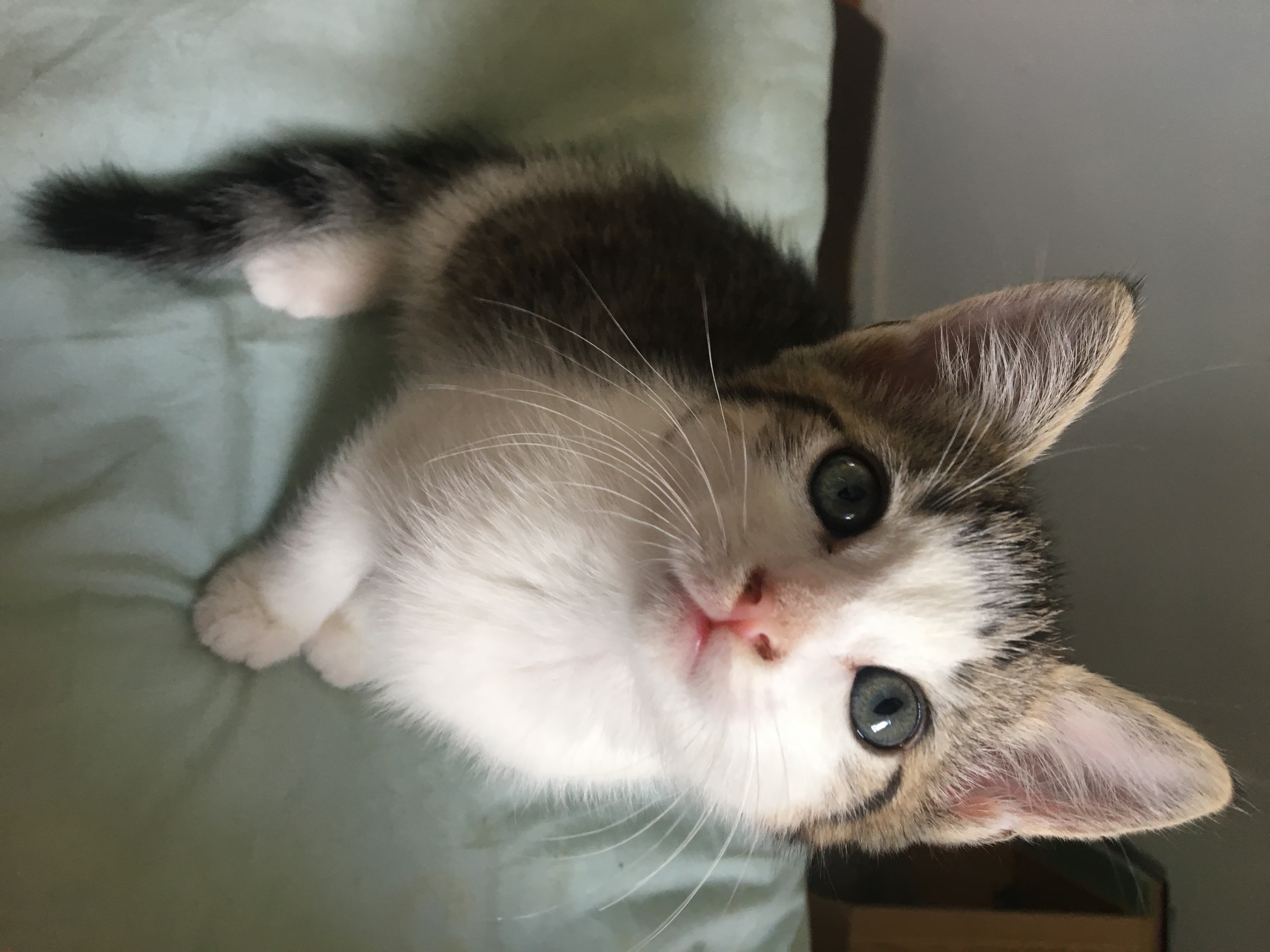 Hello there! My name is Alpine. I might be icy by name but I’m not by nature. I’m a confident guy who is happy to occupy himself waging war on toys, napping in the sun and exploring the house while mostly stay close by. Although I’m independent, I enjoy cuddles and let you know when it’s time for pats. I wasn’t handled much before coming into care but I’m very quickly warming up to it. I love playing with my siblings and my foster mum tells me our antics are very funny. As well as cats, I’m getting used to being around dogs and think they’re pretty ok though I hiss if they run or jump unexpectedly.