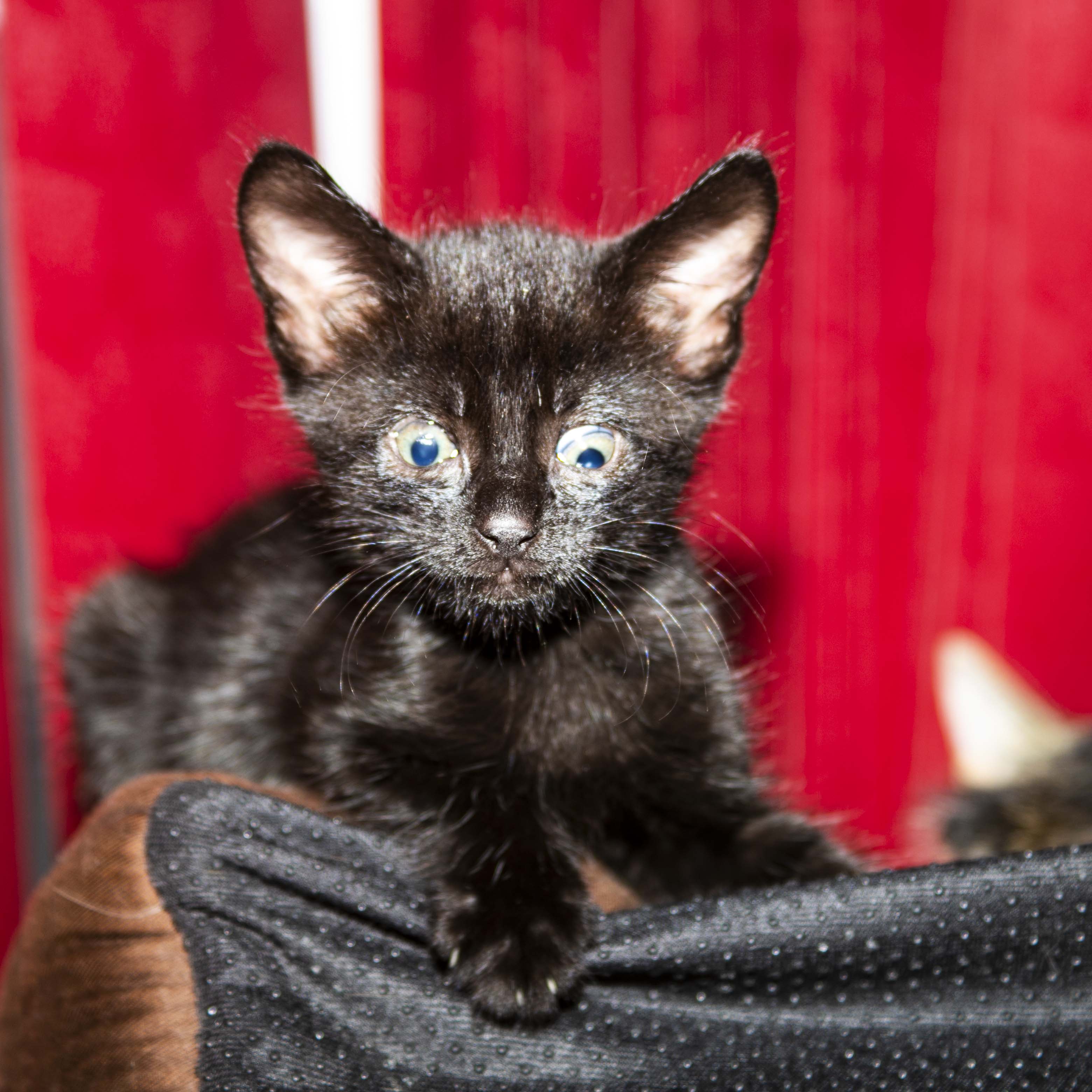 Hi, my name is Moon and I’m an 8-week old black boy kitten. All I can say is foooood. I just love food. And snuggles. And just being with you.