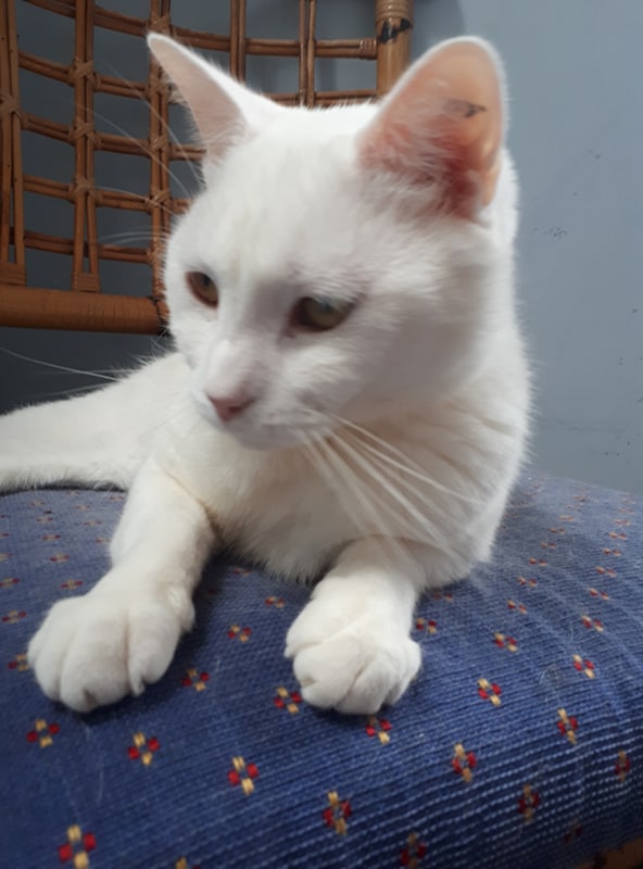 Snowy is a snuggle bunny. He loves to laze on the couch, snoozing and snuggling - he just loves a scritch behind the ears or under the chin, and will guide your hand with his paws to ensure perfect petting. Snowy is even-tempered and easy-going. He gets along well with other cats but would be best suited to a quiet household where he can move about in peace. This beautiful boy had a previous hip injury so he likes to take things nice and easy, and requires a gentle touch.