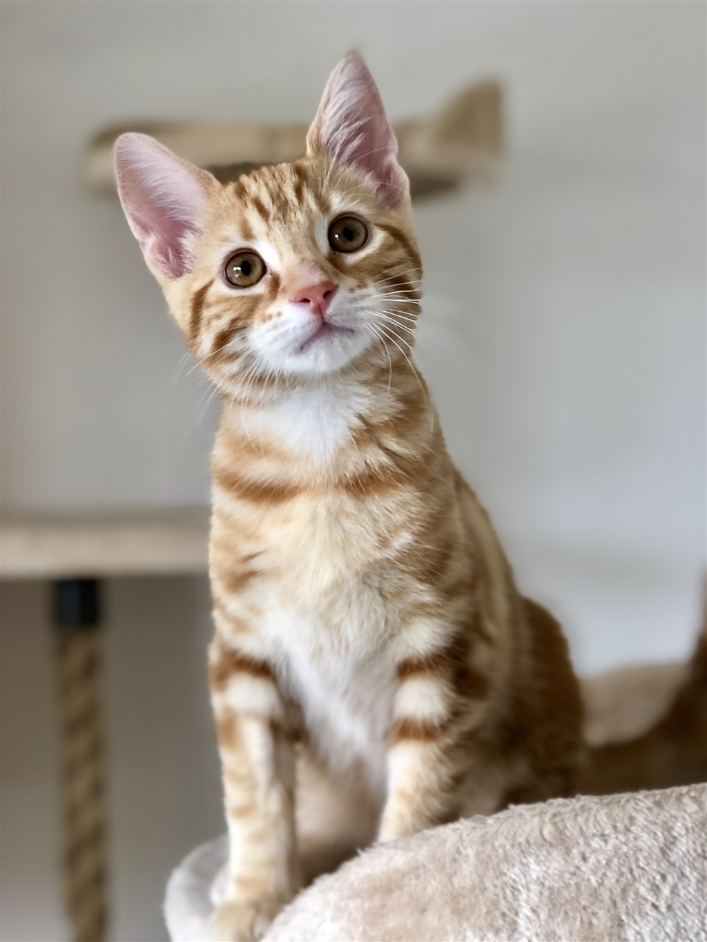 This sweet little boy is such a happy little kitten. Alexander enjoys spending his days snoozing in the sunniest spots of the house and also watching the birdies through the window. When it comes to night time he switches to turbo mode and is very playful. He LOVES to climb his cat tree and chase his sibling around the house. His zoomies are the best to watch! Alexander has been fostered in a house with three small dogs and will often play and nap with them