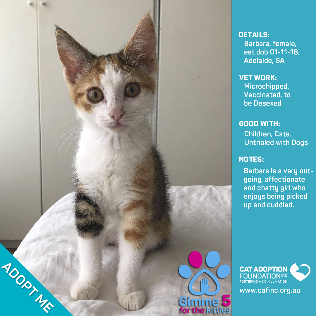 Donate to Barbara at Cat Adoption Foundation Incorporated via Shout