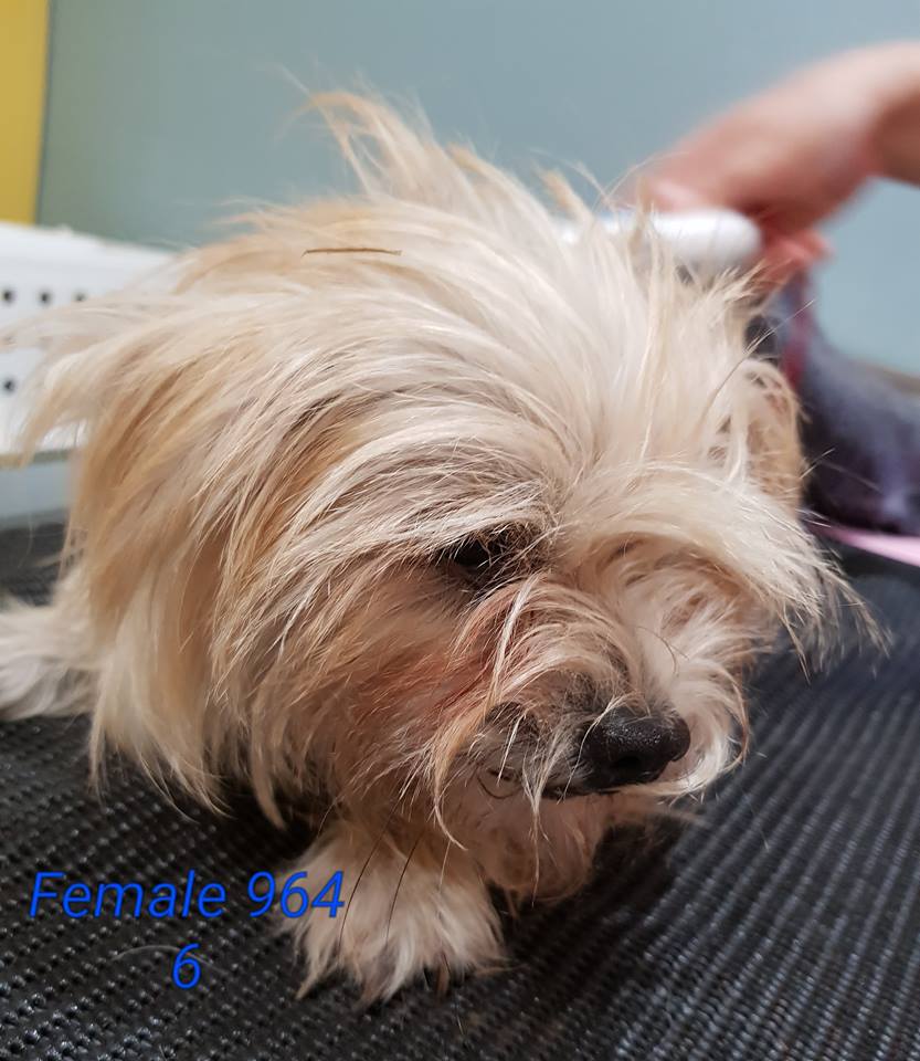 Moppet came to us with 6 others from a deceased estate. These dogs had been let to run free for a while. They are now calming down and Moppet is a cheeky cute little girl. She was the first to come upto us with her tail wagging. We dont think Moppet is house trained but is willing to learn. We think Moppet is a Jack Russel x Maltese. Her hair was badly matted so she had a haircut while down at the vet.