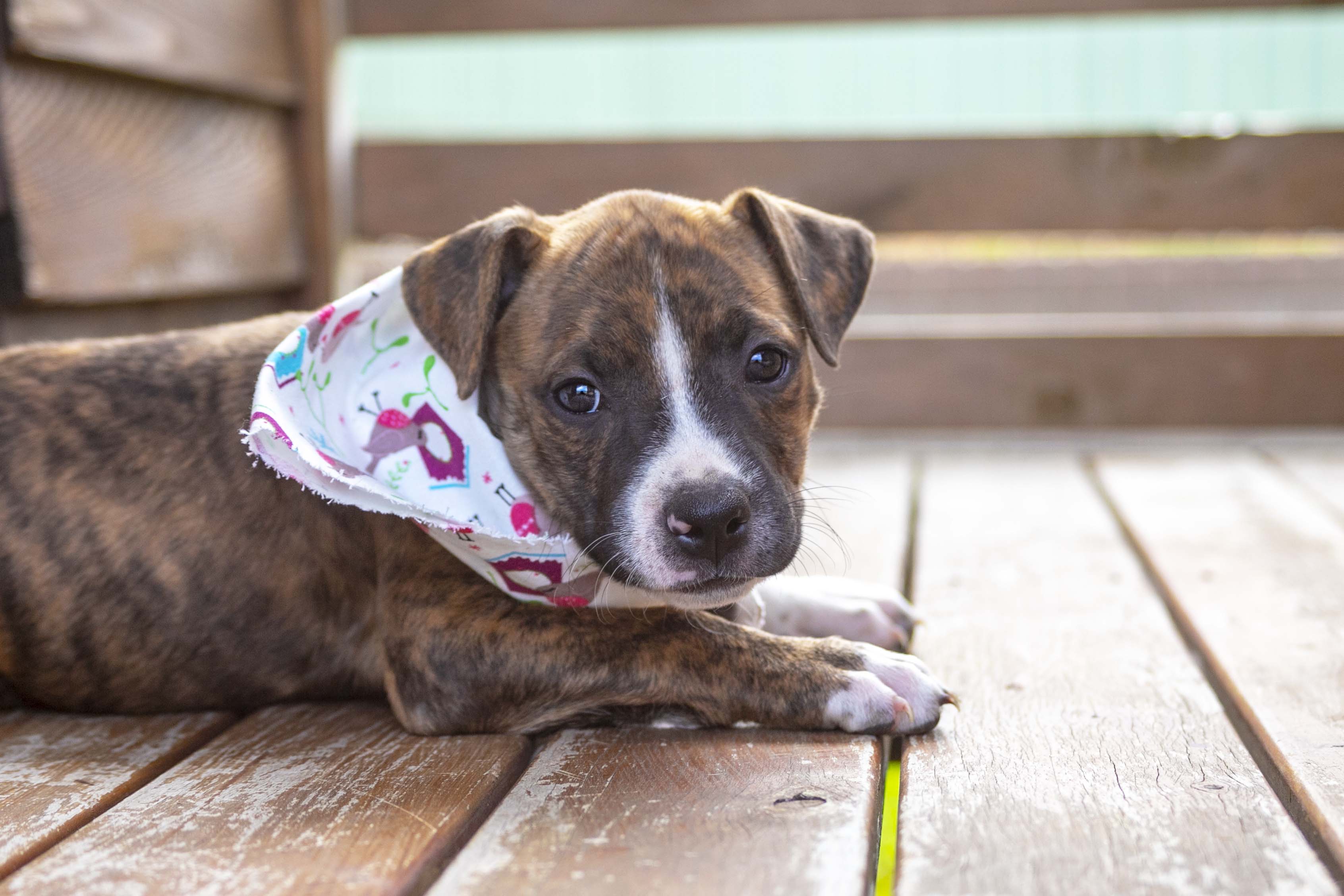 Keisha is a 7 week old, female, Staffy x puppy. Keisha is a 7 week old, female, Staffy x puppy. This sweet girl just lives to crumble in your arms.