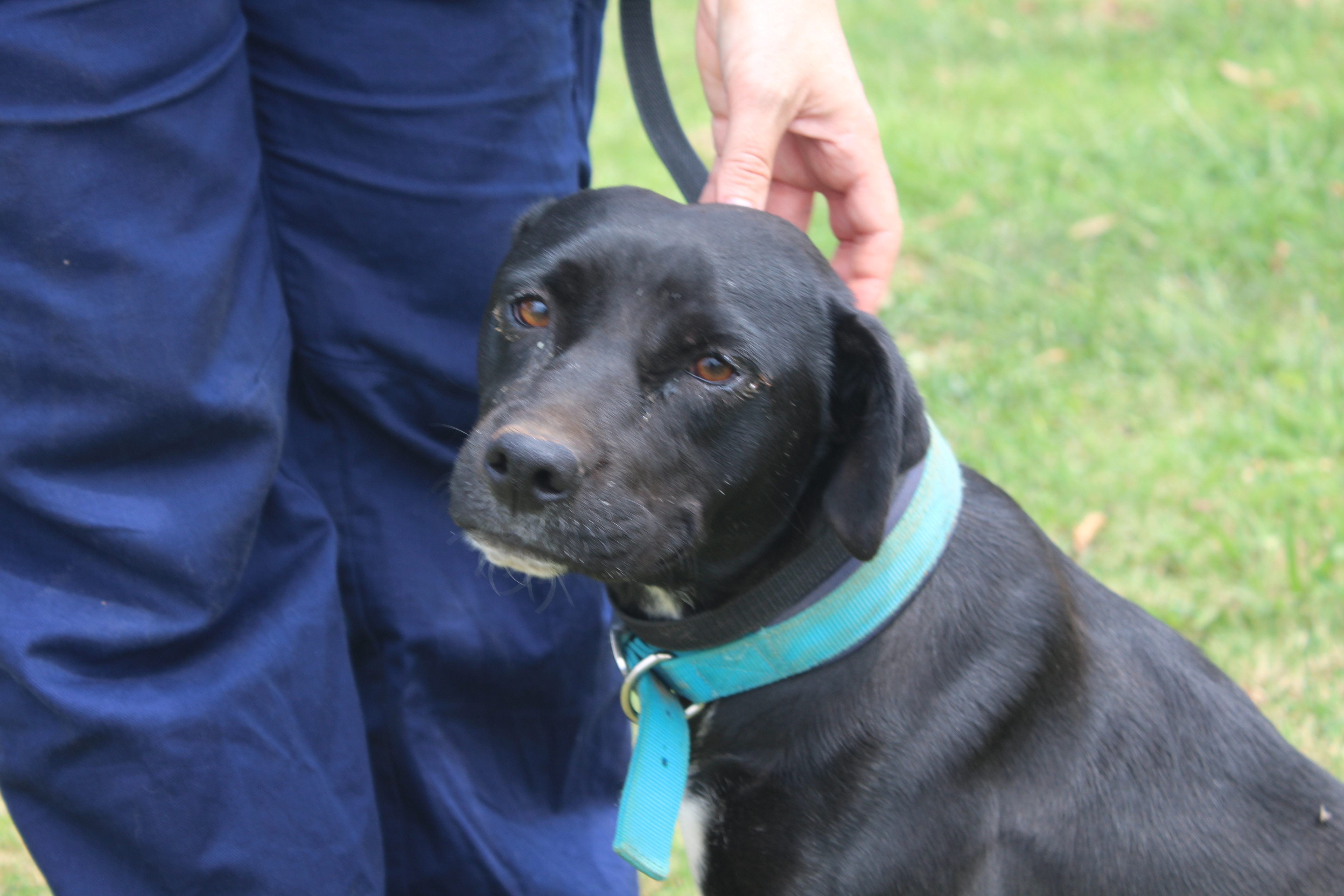 Shy at first, but once she warms up to you she can't get enough attention, loves to play with other dogs! Very good with older people as she's very gentle!