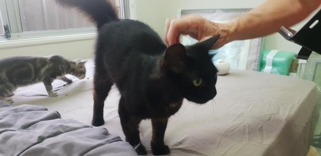 Cheeky is very affectionate, sweet, loving and playful. At just nine months of age, she is still a kitten.herself, but came to us with her little baby boy Pete in need of a home. She was a beautiful mother, Pete needing his eye removed after he came in with a penetrating injury, she allowed him to comfort and suckle off her after his surgery. What a mumma!