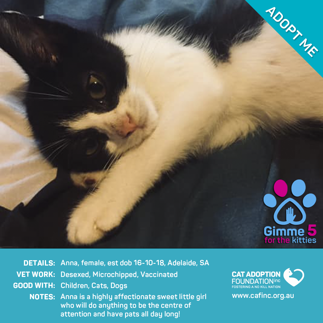 Donate to Anna at Cat Adoption Foundation Incorporated via Shout