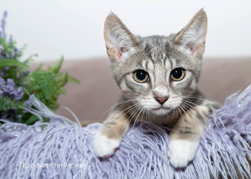 Leonardo is a handsome young boy with a gorgeous coat of grey fur and cute little white socks. He loves to hang out with his siblings Raphael, Donatello and Michaelangelo. Leonardo is still a little timid, and can still hiss at times if he’s startled. However, he has improved so much since coming into care and will continue to get more confident with time.