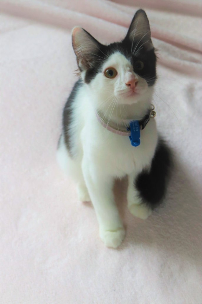 I’m super social and get along great with other cats and children. I greet people at the door and love quiet parties, like movie nights on the couch. Watch out though, I’m a certified chip thief! I haven’t met many dogs yet but I’d probably get along really well with smaller cat-friendly dogs!