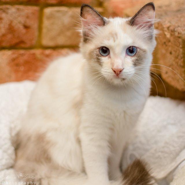 Wow... is the first word that comes to mind to describe this gorgeous, blue eyed bundle of fluff. Elsa loves to spend her day cuddling, whether it is with her siblings or her humans. She can also be quite playful but instead of play biting she will just play lick - making her all the cuter, if that's at all possible!