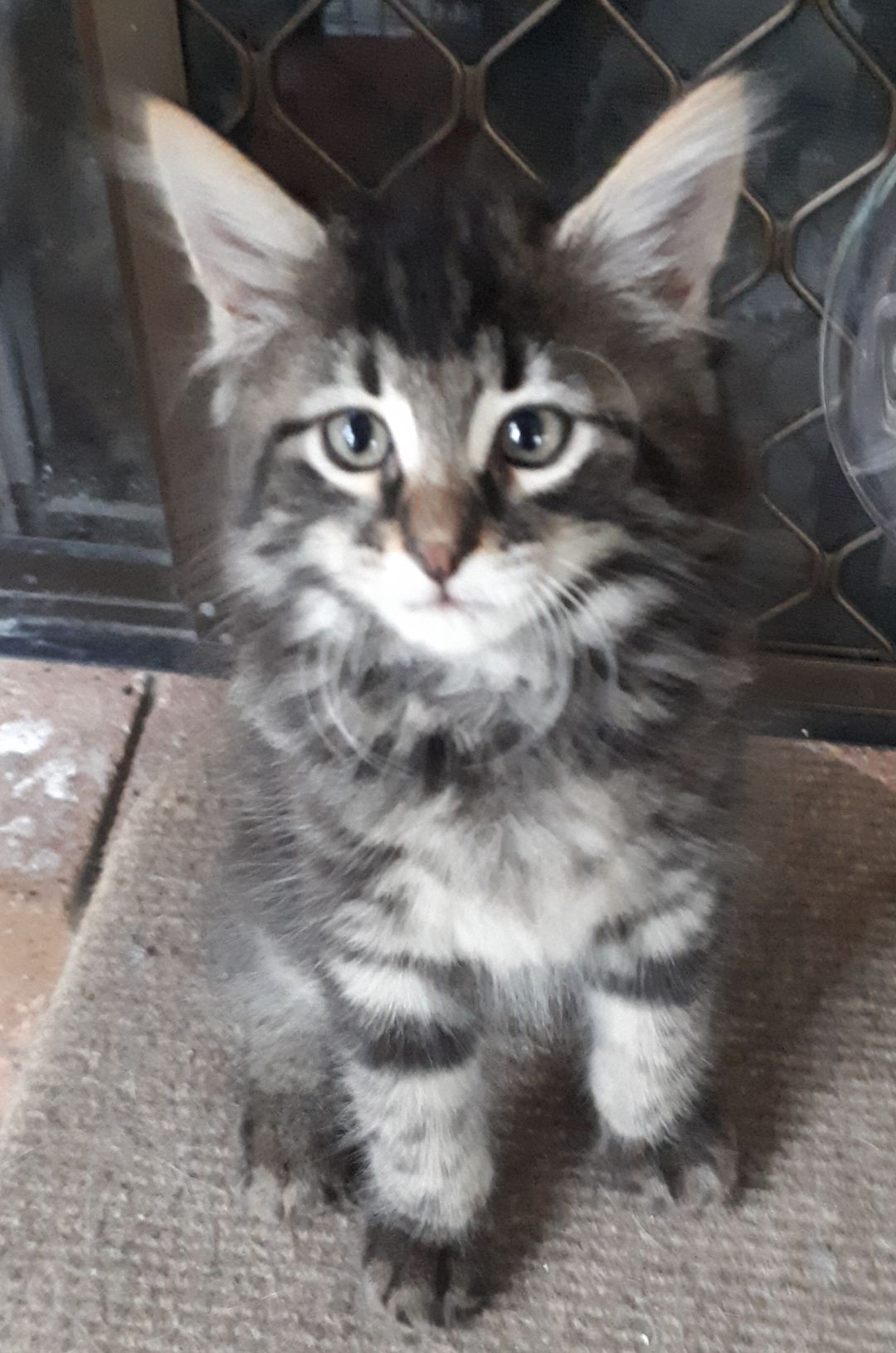 Bear is a medium haired Main Coon mix, he has huge paws which matches his huge personality.