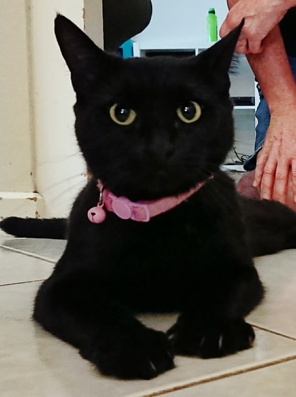 Hi I'm Ebony. I came into care with my 3 babies, Guinness, Lilac and Ashton when we were trapped by Rescue Me Whiskers & Paws at an aged care facility.