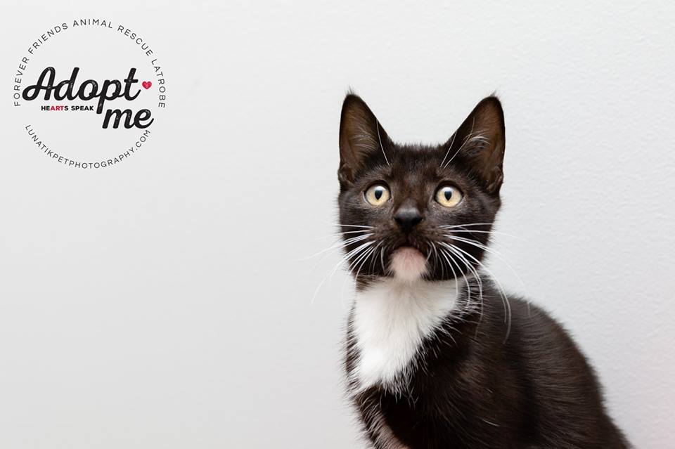 Catch him if you can! Zippy is an agile 10 week old domestic short hair with aspirations to be the next big parkour champion, or Calvin Klein meowdel. When he's not climbing or jumping from things he's tumbling around playing with his brother, or if you're lucky you might catch him showing his sensitive side and comfort nursing from his mama - he'd never admit to that though.
