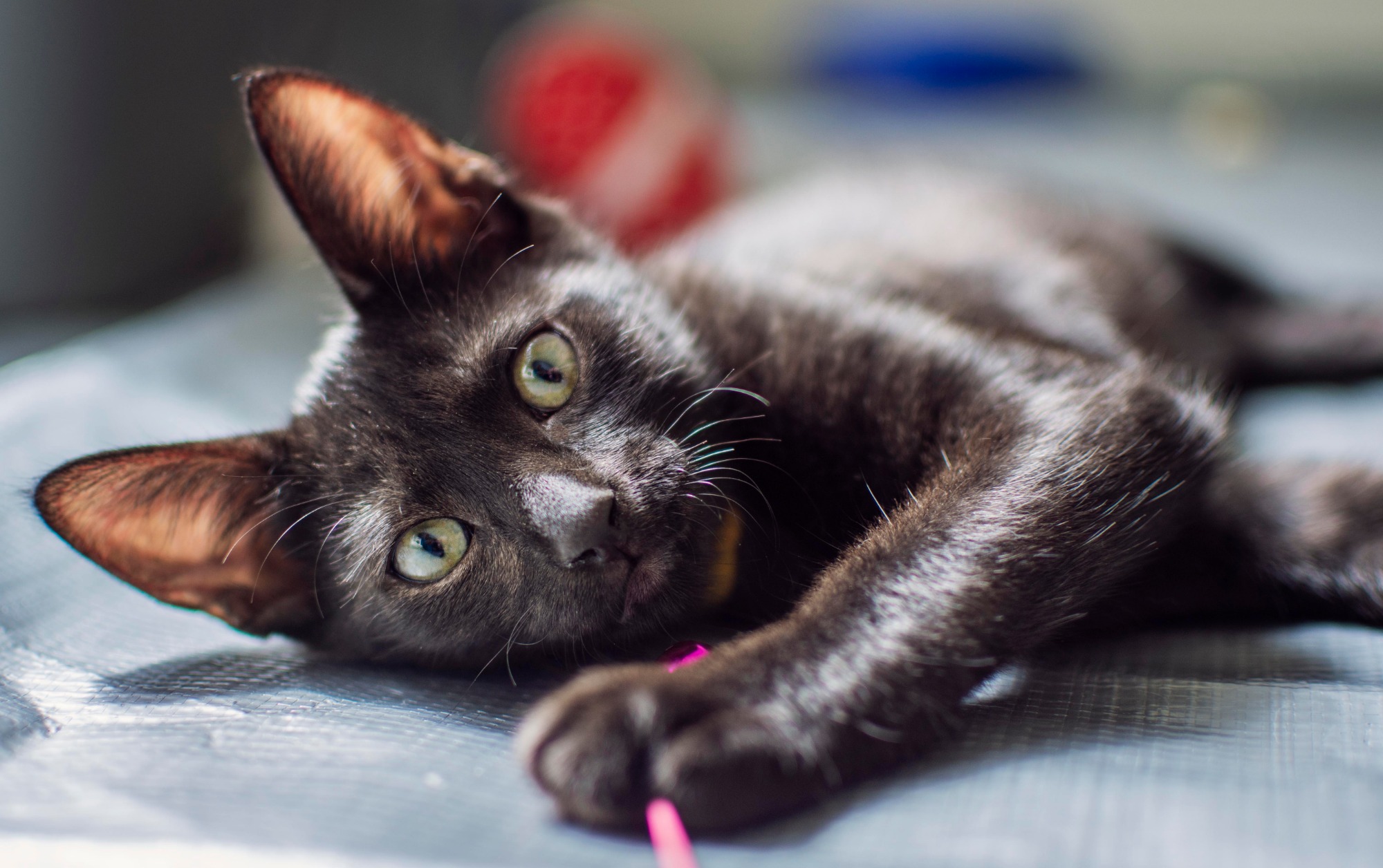 Opal is our big softie. A real teddy bear, he will nibble your toes to tell you when he needs you to pick him up. You can then turn him upside down, cradle him like a baby and rub his tummy. He responds by baking air biscuits and purring loudly while looking at you with utter happiness and contentment. Opal has a beautiful, seemingly black coat with subtle reddish brown markings visible in sunlight.